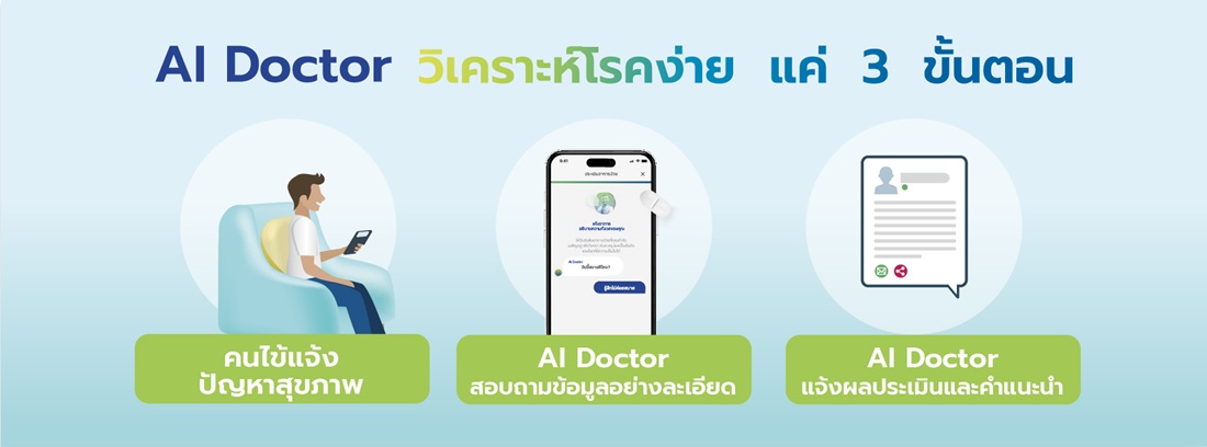 ตอบ คำตอบของ AI Doctor ไม่ถือว่าเป็นการวินิจฉัยของแพทย์ แต่เป็นเพียงข้อมูลเบื้องต้นให้คนไข้ตัดสินใจมาพบแพทย์หรือรอดูอาการ