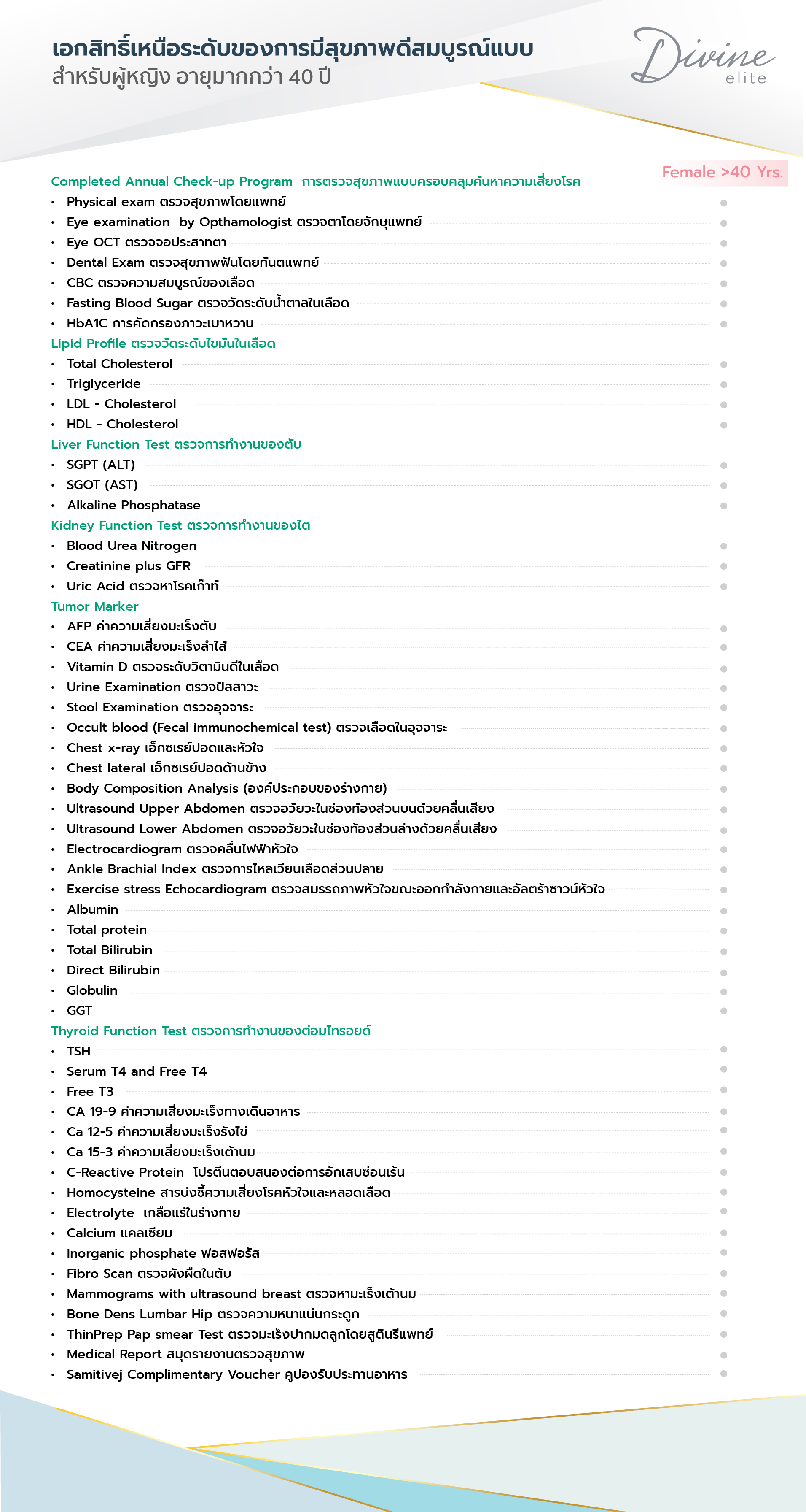 - โปรแกรมตรวจสุขภาพสำหรับ สุภาพสตรี อายุมากกว่า 40 ปี