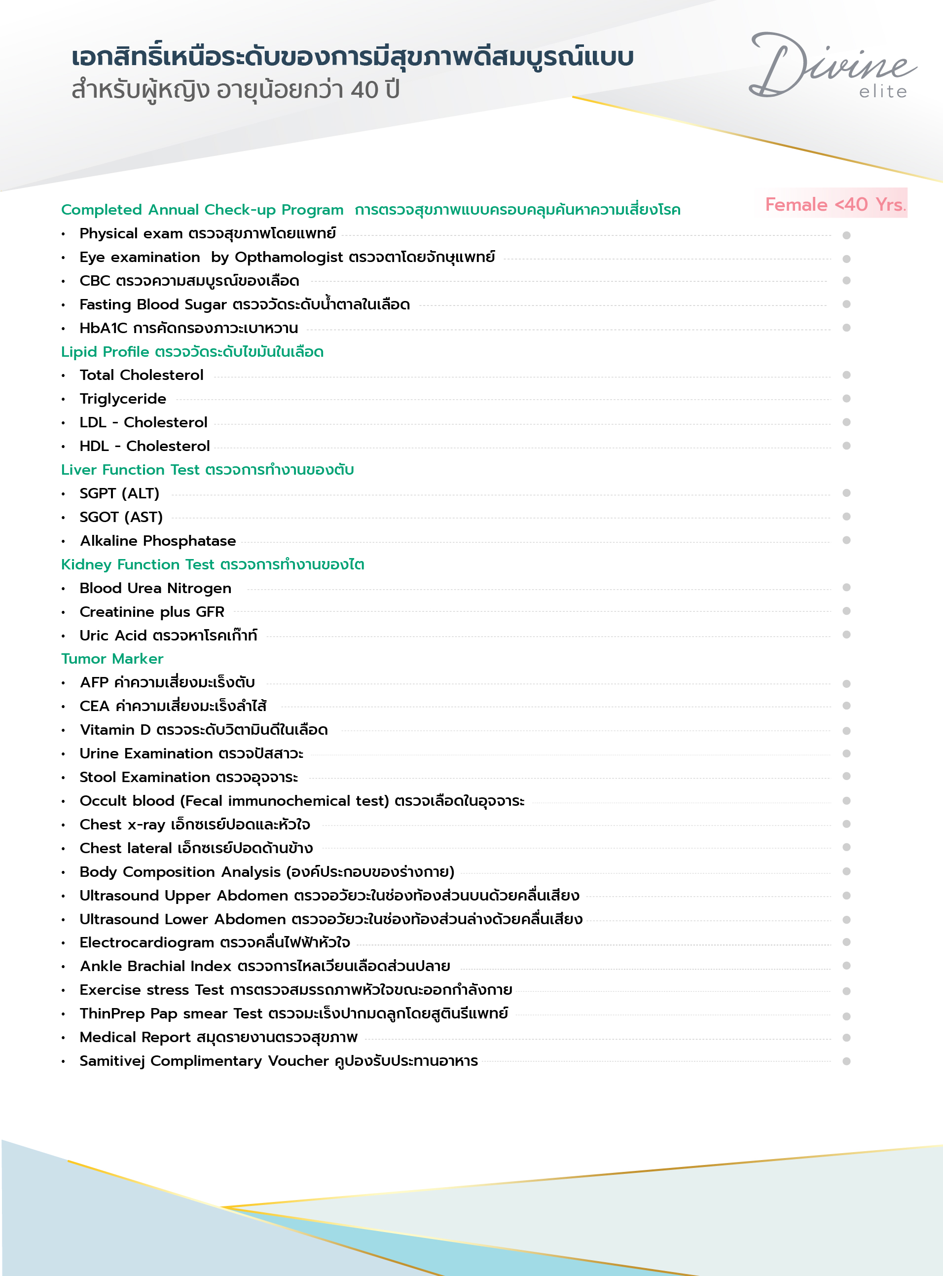 - โปรแกรมตรวจสุขภาพสำหรับ สุภาพสตรี อายุน้อยกว่า 40 ปี