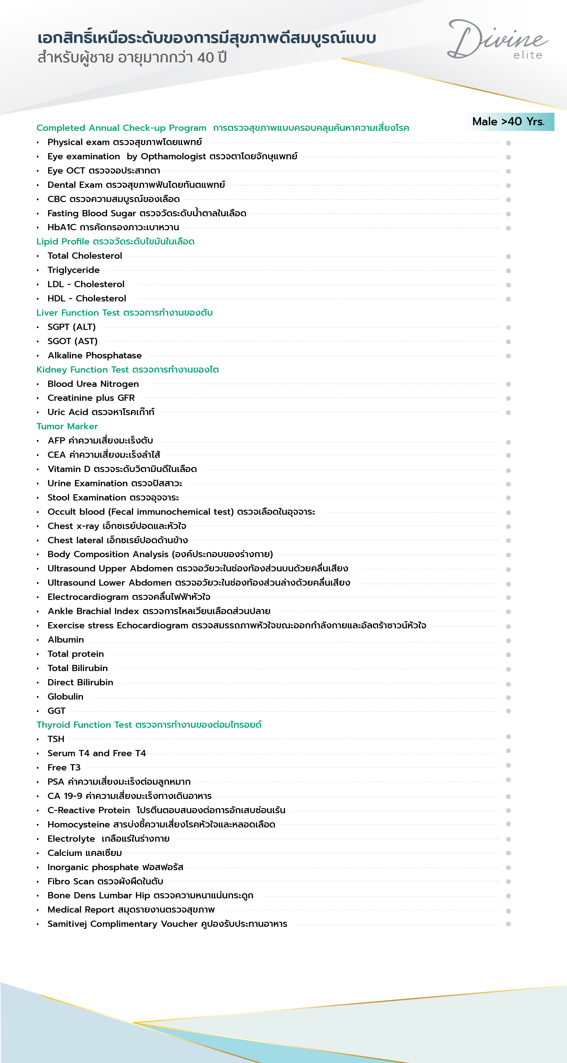 - โปรแกรมตรวจสุขภาพสำหรับ สุภาพบุรุษ อายุมากกว่า 40 ปี