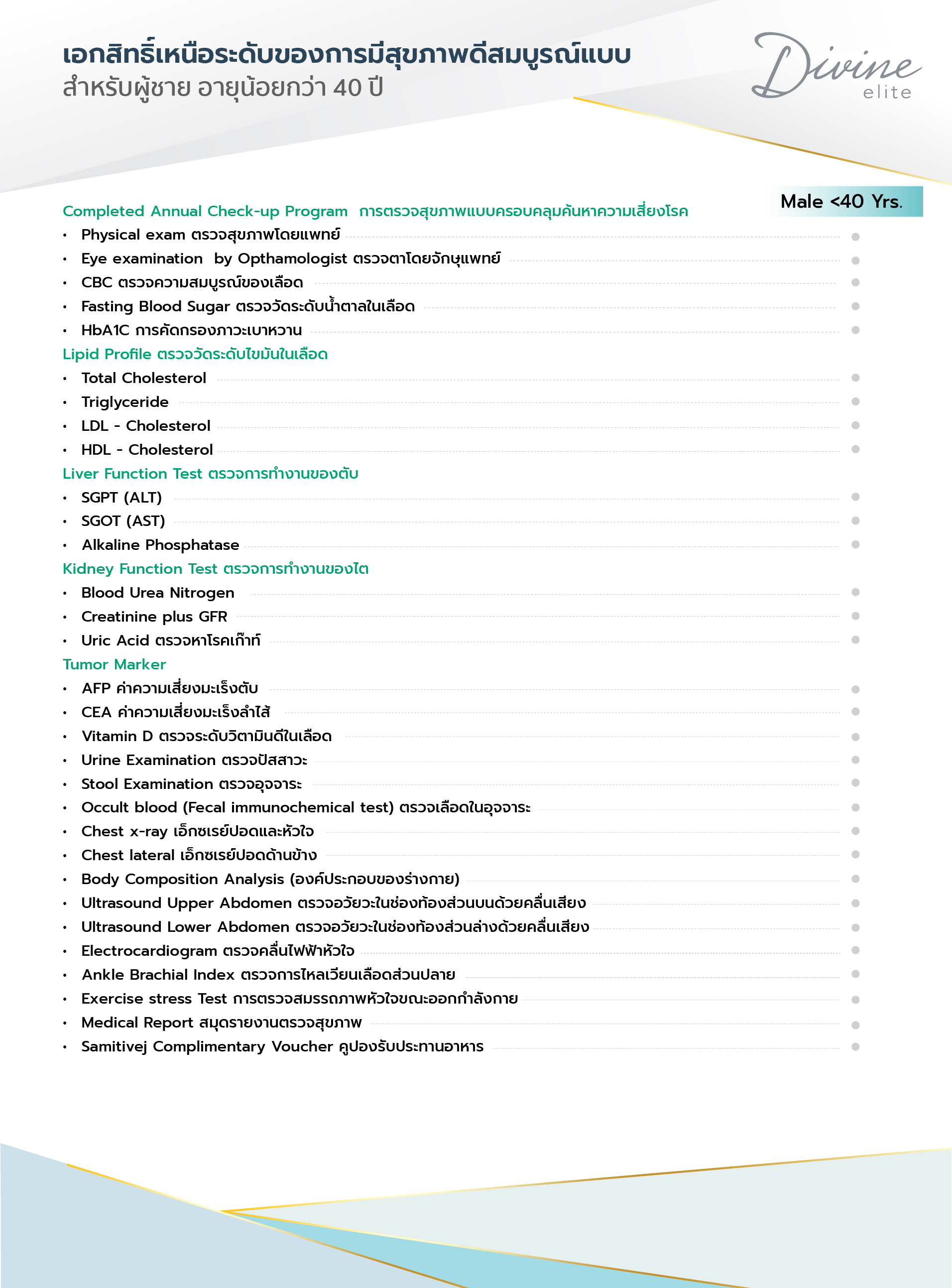 - โปรแกรมตรวจสุขภาพสำหรับ สุภาพบุรุษ อายุน้อยกว่า 40 ปี