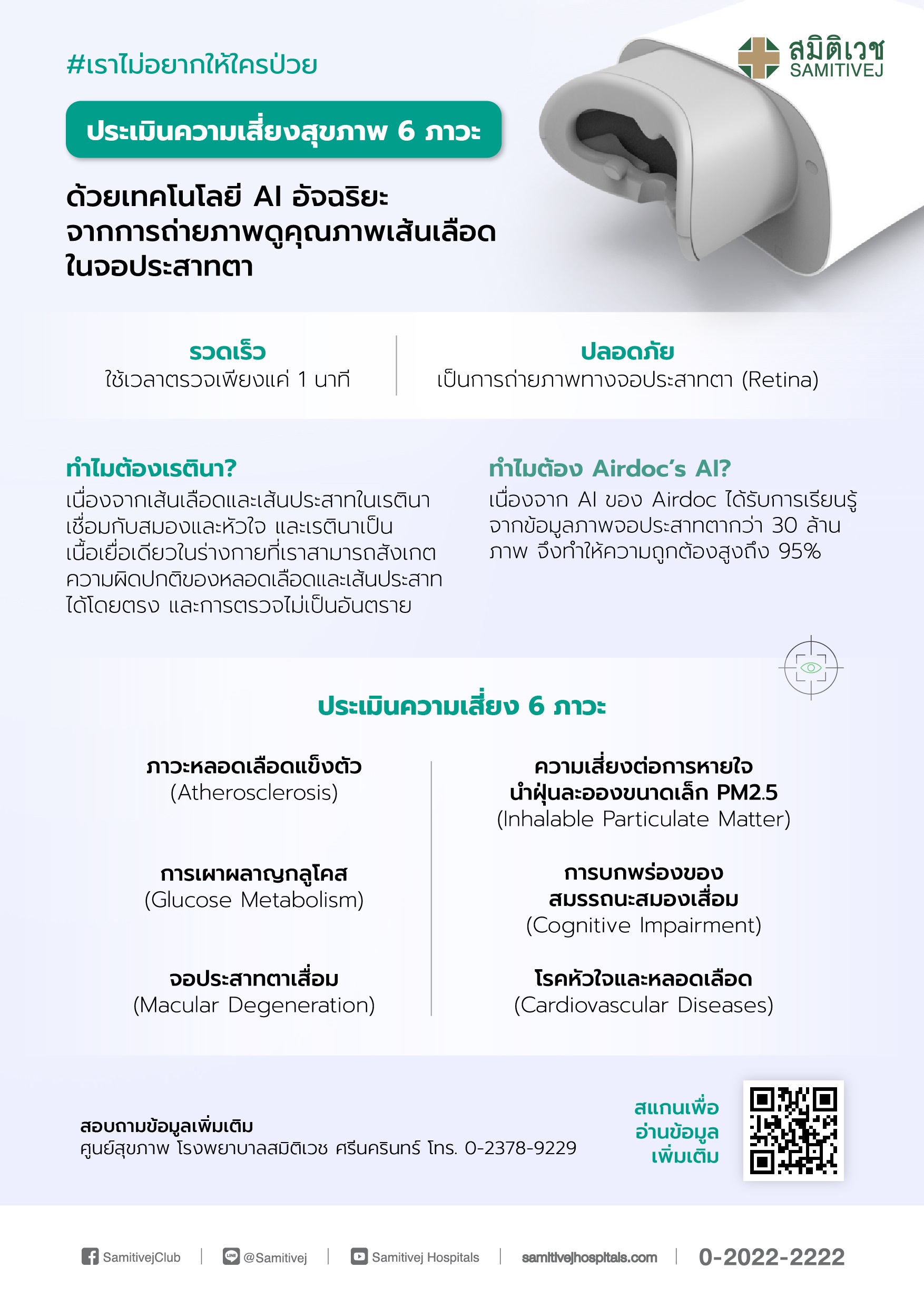 รายละเอียด การตรวจประเมินความเสี่ยงสุขภาพ 6 ภาวะ ด้วยเครื่อง AI Retinal Image เทคโนโลยี AI อัจฉริยะจากการถ่ายภาพดูคุณภาพเส้นเลือดในจอประสาทตา