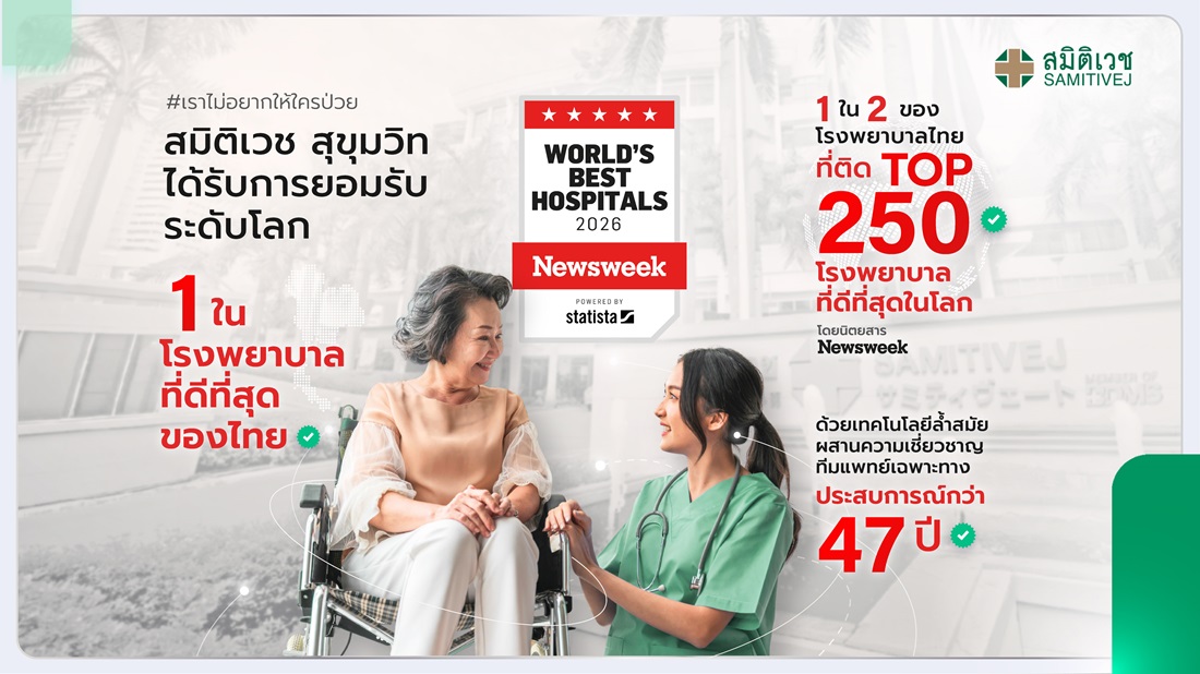 โรงพยาบาลสมิติเวช สุขุมวิท ได้รับการจัดอันดับจาก Newsweek ให้เป็นหนึ่งใน World’s Best Hospitals 2026 โดยติดอยู่ในกลุ่ม Top 250 โรงพยาบาลที่ดีที่สุดของโลก และเป็น หนึ่งในสองโรงพยาบาลในประเทศไทย ที่ได้รับการจัดอันดับในระดับโลกนี้