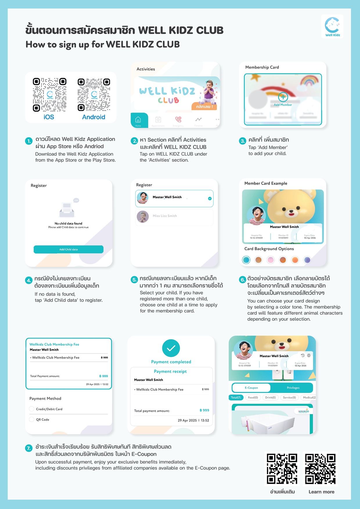 Well Kidz Club (อัตราค่าสมาชิก 999 บาท ต่อปี ต่อเด็ก 1 ท่าน)